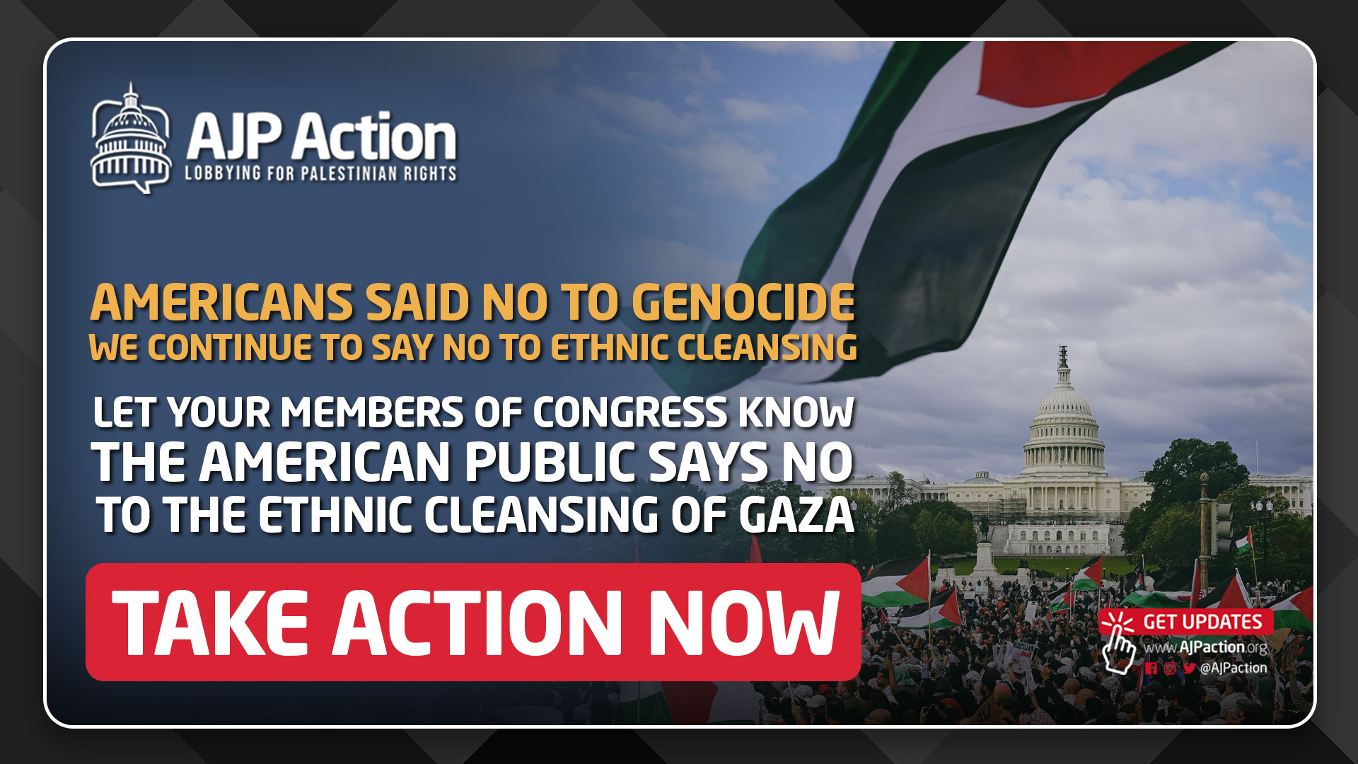 The American public overwhelmingly rejects Trump’s call to steal Palestinian land and Israel’s ongoing campaign to erase the Palestinian people. Our Members of Congress must act now—not to bankroll and endorse more Israeli war crimes, but to stop supporting the settler-colonialism state once and for all.