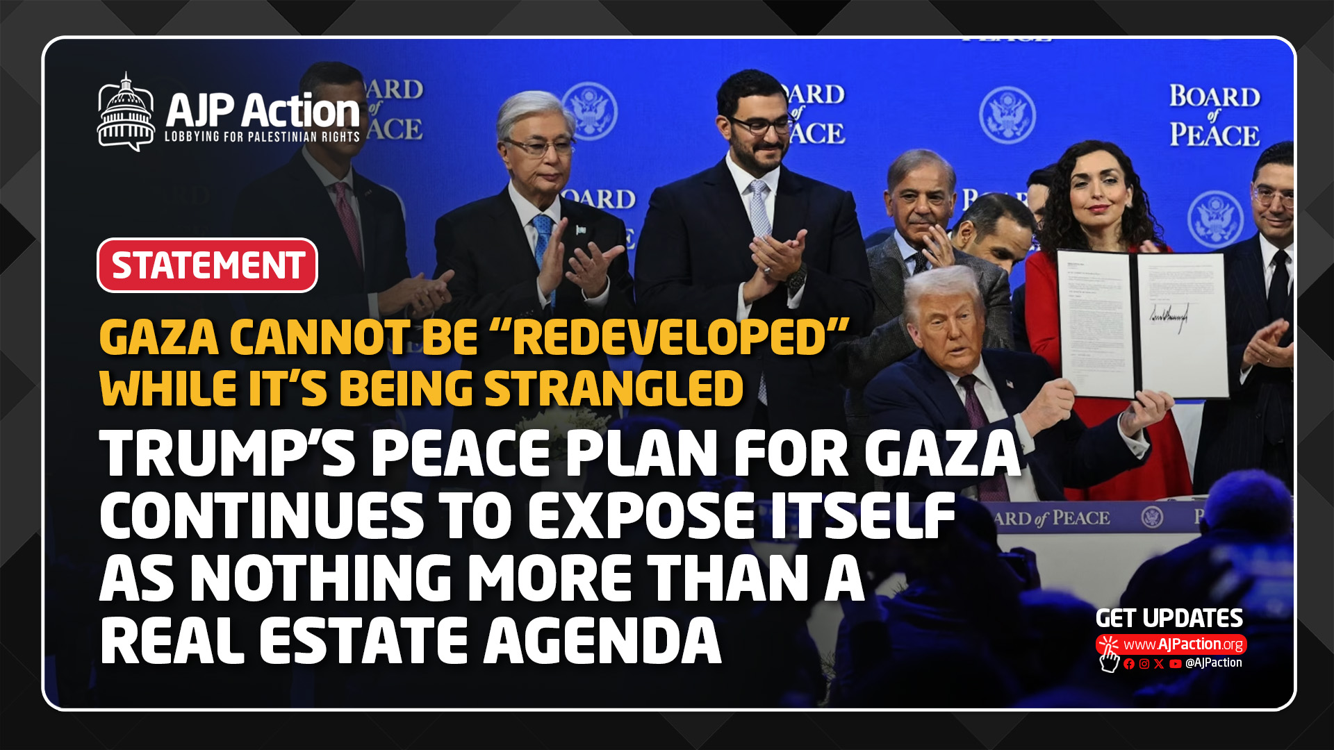 Peace is not a brand. Gaza is not a development opportunity. And Palestinians are not an obstacle to be managed while the elites workshop maps and renderings. Trump’s plan continues to expose itself for what it is: a real-estate fantasy and a political project built on denial, impunity, and the attempted erasure of Palestinian rights. Nothing here is signaling an actual path to peace.